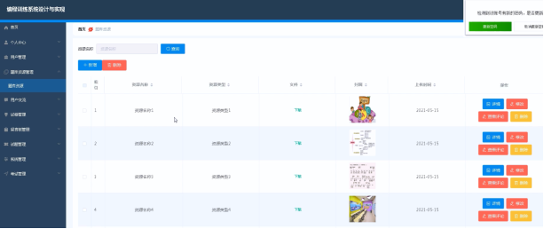 系统管理员可以对题库资源信息进行添加,修改,删除以及查询操作。具体界面如图5.2所示。