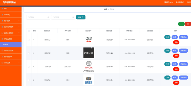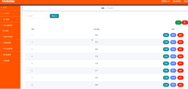系统管理员可以汽车品牌信息进行添加,修改,删除以及查询操作。具体界面如图5.2所示。