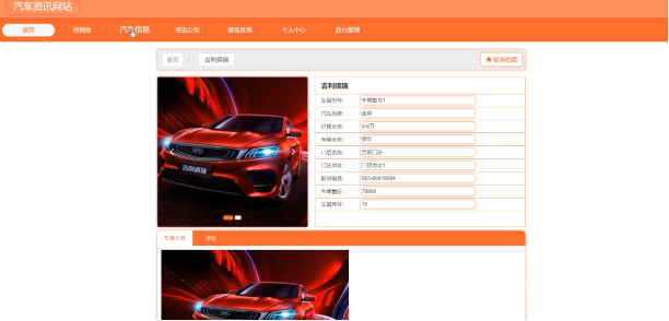 管理员可以查看汽车信息,可以对汽车信息进行收藏和评论操作。界面如下图所示: