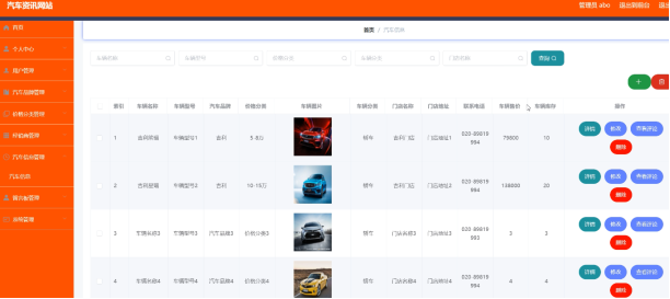 系统管理员可以对汽车信息进行添加修改删除操作。界面如下图所示: