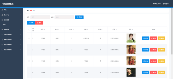 图5.2 学生管理页面