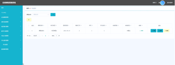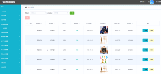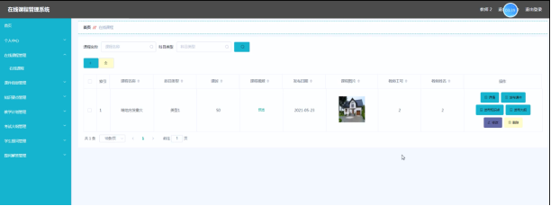 系统管理员可以对在线课程信息进行删除以及查询操作。界面如下图所示:
