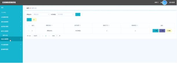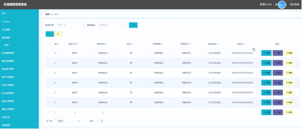 在线课程管理系统的系统管理员可以管理教师,可以对教师信息添加修改删除以及查询操作。具体界面的展示如图5.1所示。