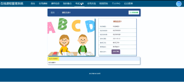 学生登录后可以在首页查看在线课程,可以下载课件,收藏等操作。界面如下图所示: