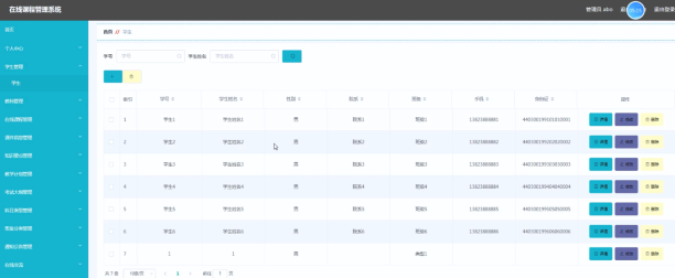 系统管理员可以查看对学生信息进行添加,修改,删除以及查询操作。具体界面如图5.2所示。
