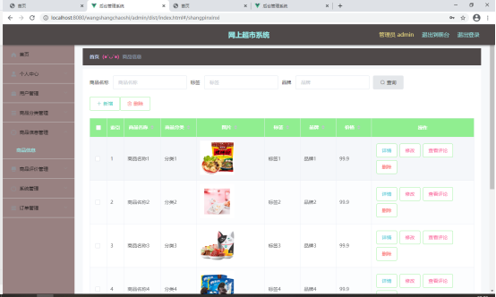 图5.3 商品信息管理页面