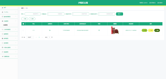 图5.1 即为编码实现的访客管理界面,管理员在该界面中对访客的信息进行新增,根据访客姓名,访客手机号,访客身份证号等条件查询访客信息,可以对访客的信息进行修改与删除。