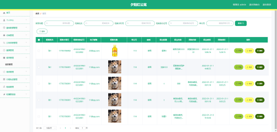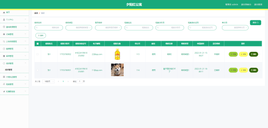 图5.2 即为编码实现的缴费管理界面,管理员在该界面中新增缴费信息,缴费的费用包括物业费,房租费等,可以修改,查询,删除缴费信息,租户已经缴纳费用,则对应的缴费信息栏就会显示已缴。未缴纳费用的租户则会在对应的缴费信息栏中显示未缴。