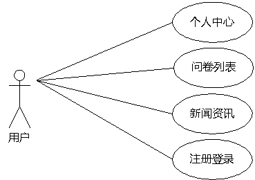 图3.6即为用户用例图,用户权限操作的功能包括参与问卷调查,查看新闻,查看问卷调查记录。