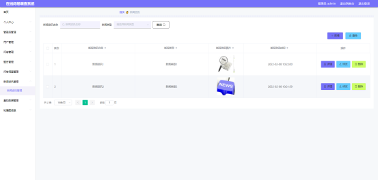 图5.5 即为编码实现的新闻资讯管理界面,管理员在该界面中负责发布新闻资讯,更改新闻资讯的部分信息,删除需要删除的新闻资讯信息。