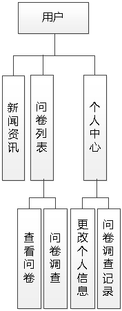 图4.2即为设计的用户功能结构,用户权限操作的功能包括参与问卷调查,查看新闻,查看问卷调查记录。