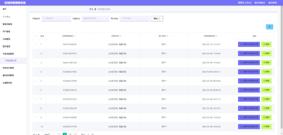 图5.9 即为编码实现的问卷调查记录界面,用户在该界面中可以对参与问卷调查的记录信息进行查看。