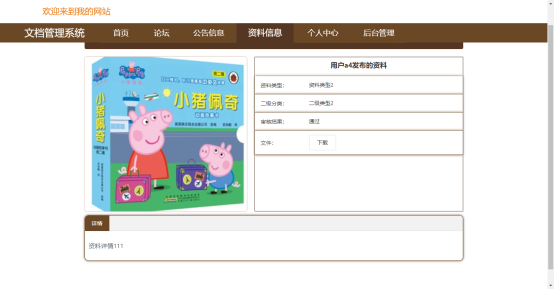 用户可以在首页的资料信息里面查看和下载资料信息。