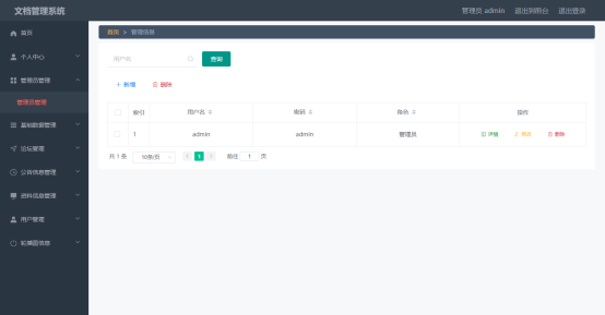 图5.4 管理员信息管理页面