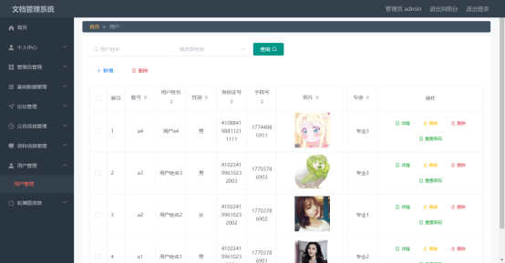 管理员可以对用户信息进行添加,修改,删除,查询操作。
