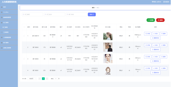 如图5.1显示的就是员工列表页面,此页面提供给管理员的功能有:查看员工、新增员工、修改员工、删除员工等。