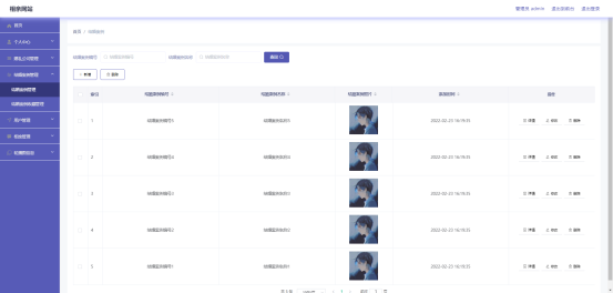 图5.3 即为编码实现的结婚案例管理界面,结婚案例信息包括结婚案例照片,结婚案例名称,结婚案例编号等信息,管理员对结婚案例信息进行增删改查管理。