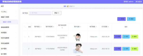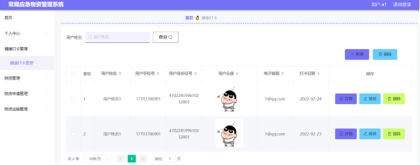 图5-13健康打卡管理界面