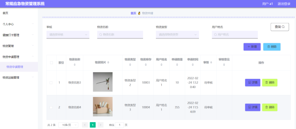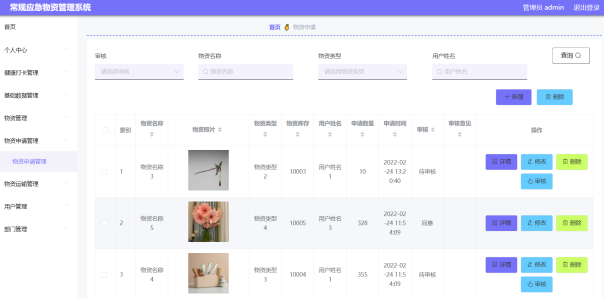 图5-15物资申请管理界面