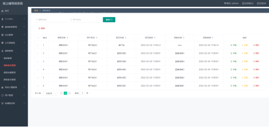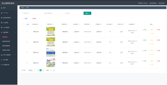如图5.1显示的就是课程列表页面,此页面提供给管理员的功能有:查看课程、新增课程、修改课程、删除课程等。