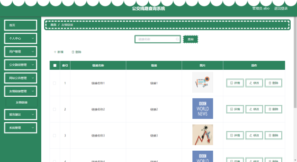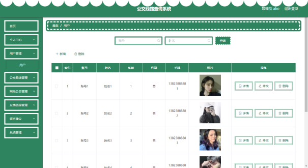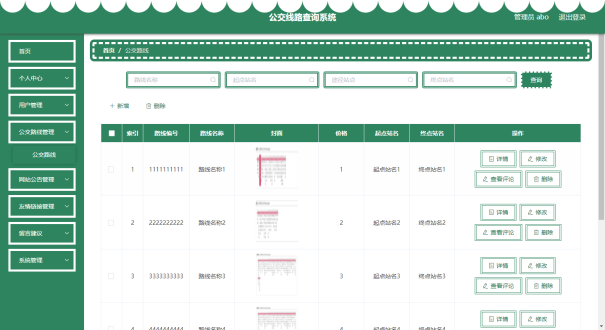 管理员可以对公交线路信息进行添加,修改,删除,查询操作。