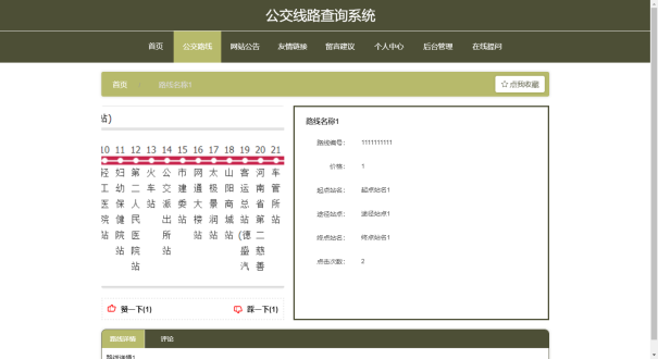 用户可以查看公交线路查询,可以收藏和评论公交线路。
