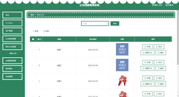 图5-3 网站公告管理页面