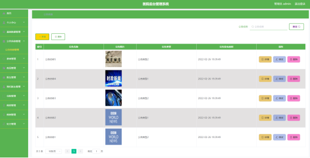 图5-2 公告信息管理页面