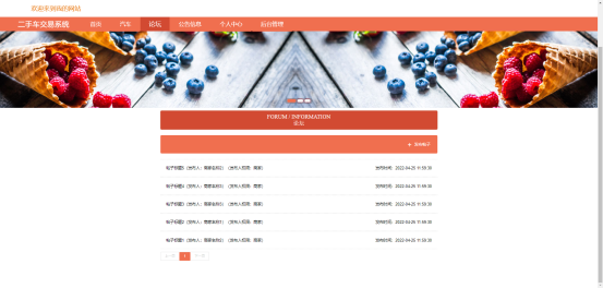 图5.6 即为编码实现的论坛管理界面,商家也能通过论坛管理功能新增帖子,跟踪发布的帖子,比如随时查看帖子的评论,以及查看帖子的详情等。