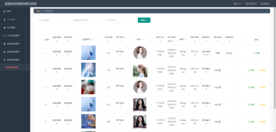 医生点击导航栏的预约接种管理链接就进入预约接种管理界面。预约接种管理界面如图5.4所示。医生需要对预约接种信息进行查看,然后审核预约接种信息。