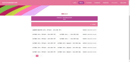 用户点击导航栏的在线论坛链接就进入在线论坛界面。在线论坛界面如图5.7所示。本功能允许用户查看所有帖子,并可以对已查看的帖子发布评论。