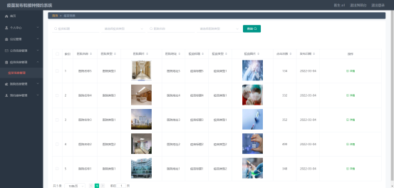 管理员点击导航栏的疫苗信息管理链接就进入疫苗信息管理界面。疫苗信息管理界面如图5.1所示。本功能允许管理员对疫苗信息进行修改,包括修改疫苗图片,疫苗标题等信息,删除疫苗信息等。