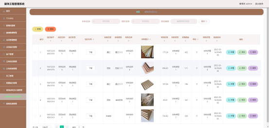 图5.3 装饰材料总计划管理界面