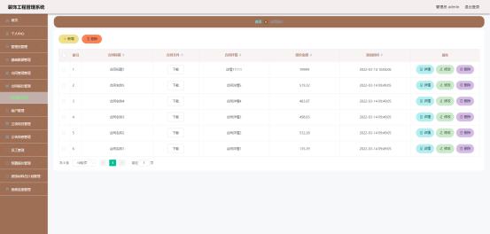 图5.7 合同信息管理界面