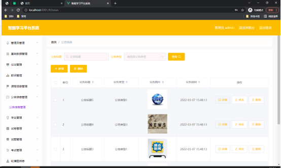 图5.4 公告信息管理页面