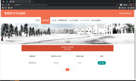 如图5.3显示的就是试卷信息管理页面,此页面提供给管理员的功能有:根据试卷信息进行条件查询,还可以对试卷信息进行新增、修改、查询操作等等。