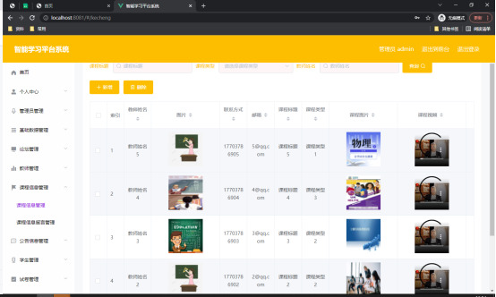 图5.2 课程信息管理页面