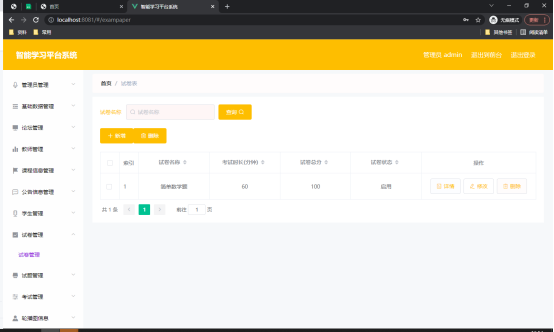 图5.3 试卷信息管理页面