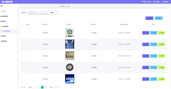 图5.3公告类型管理界面