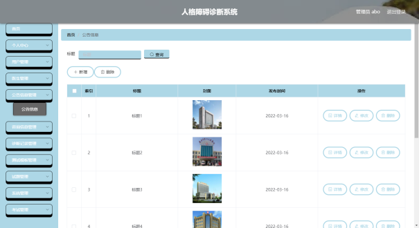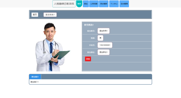 Personality Disorder Diagnosis System Based on SpringBoot and Vue
