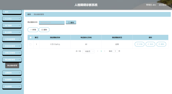 管理员可以对测试模板进行添加,修改,删除,查询操作。