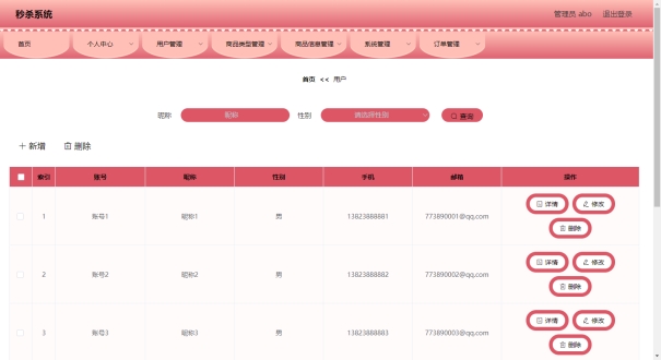 管理员可以对用户信息进行添加,修改,删除,查询操作。