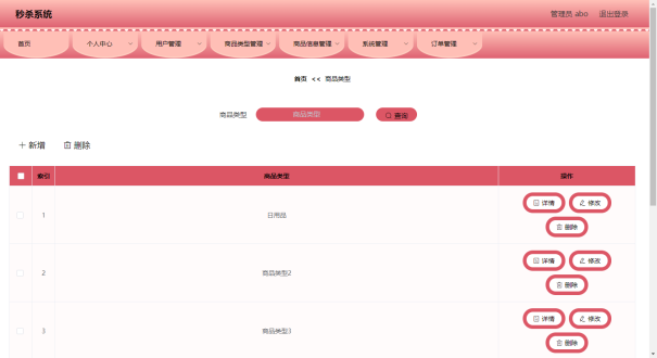 管理员可以对商品类型信息进行添加,修改,删除,查询操作。
