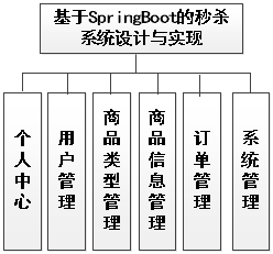 在管理员功能模块确定下来的基础上,对管理员各个功能进行设计,确定管理员功能的详细模块。绘制的管理员功能结构见下图。管理员功能有个人中心,用户管理,商品类型管理,商品信息管理,订单管理,系统管理。