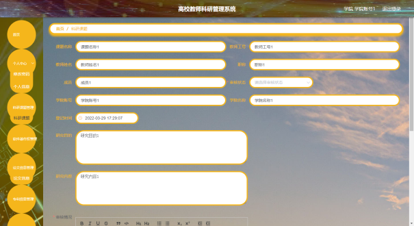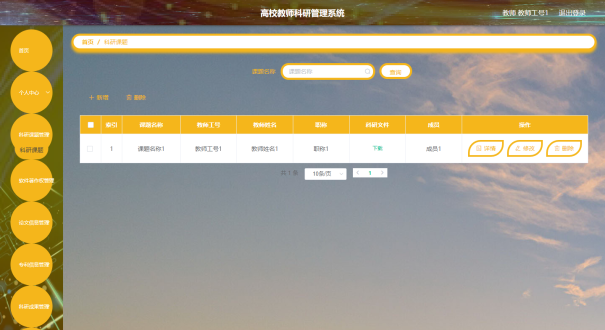 教师可以对科研课题进行添加,修改,删除,查询操作。