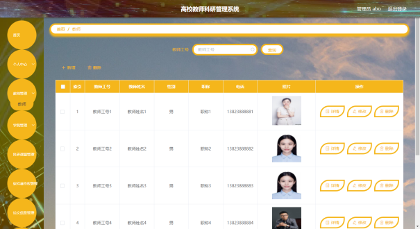 管理员可以对教师信息进行添加,修改,删除,查询操作。