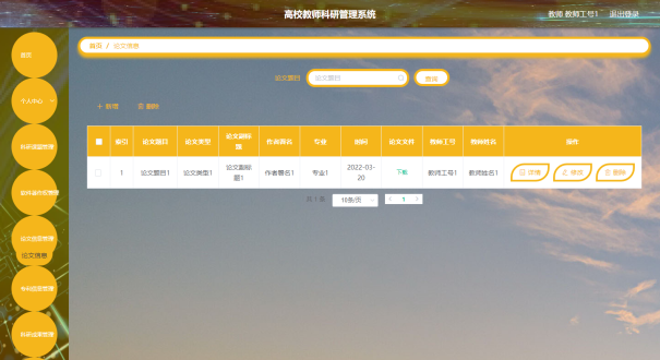 教师可以对论文信息进行添加,修改,删除,查询操作。
