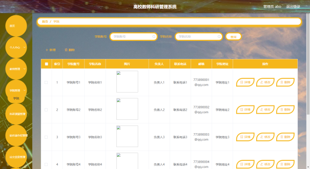 管理员可以对学院信息信息进行添加,修改,删除,查询操作。