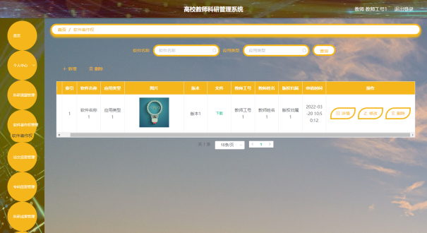教师可以对软件著作权进行添加,修改,删除操作。