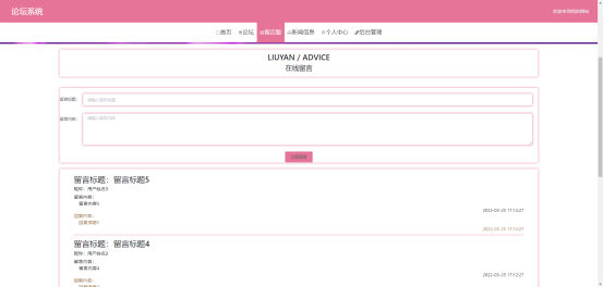 图5.7 留言版界面